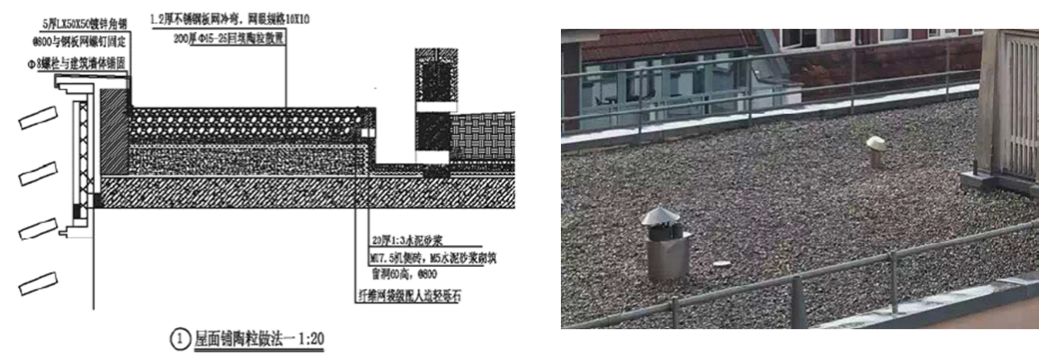 图2 蓝色屋顶设计图纸(左)和实景参考(右)