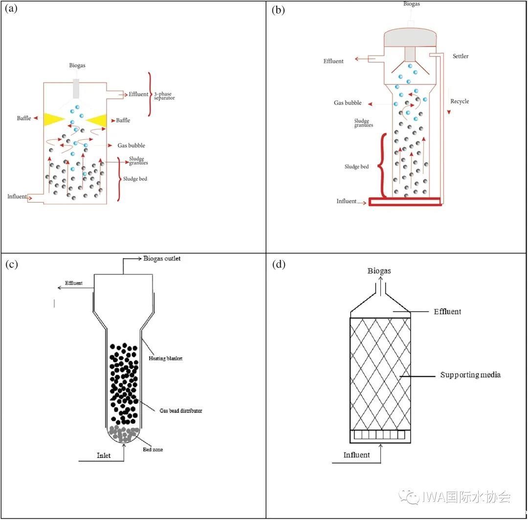 图. 四种厌氧颗粒污泥生物反应器系统的原理图