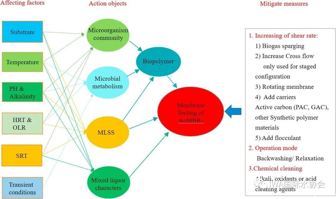 这是一篇发表在2018年《Bioresource Technology》上的综述文章,联名作者来自西班牙、韩国、法国和澳大利亚四国的大学。本文的关注点放在了AnMBR的工艺模型和控制上。作者认为若要优化AnMBR工艺,需要打造更成熟、具体的模型,以便加深对膜污染的认识。他们认为需要加强对微生物因素的考虑,因为它是膜污染的重要成因。在此基础之上,建立更好的反馈控制策略,最终达到优化工艺的目的。
