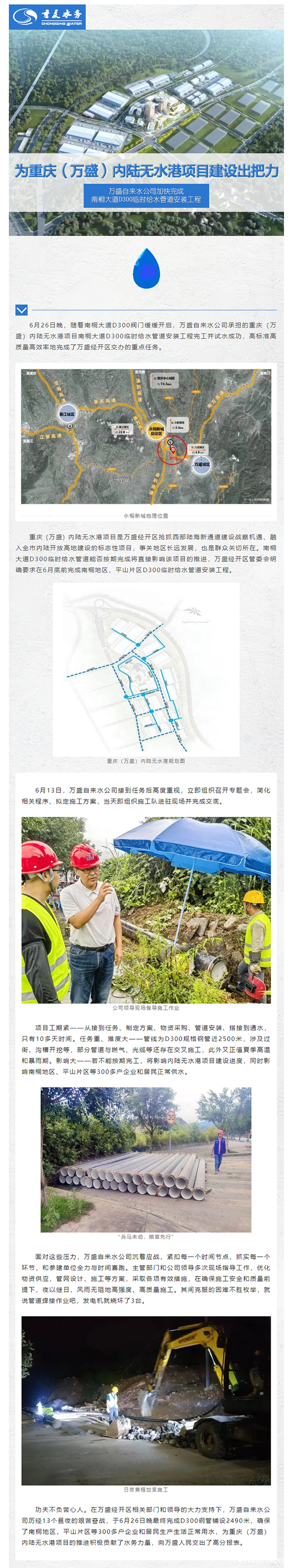 为重庆(万盛)内陆无水港项目建设出把力——万盛自来水公司加快完成南桐大道D300临时给水管道安装工程