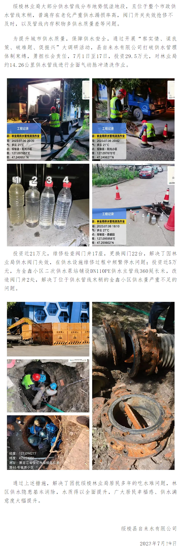 县自来水有限公司持续深化能力作风建设,开展林业局区域供水管网维修及清洗作业