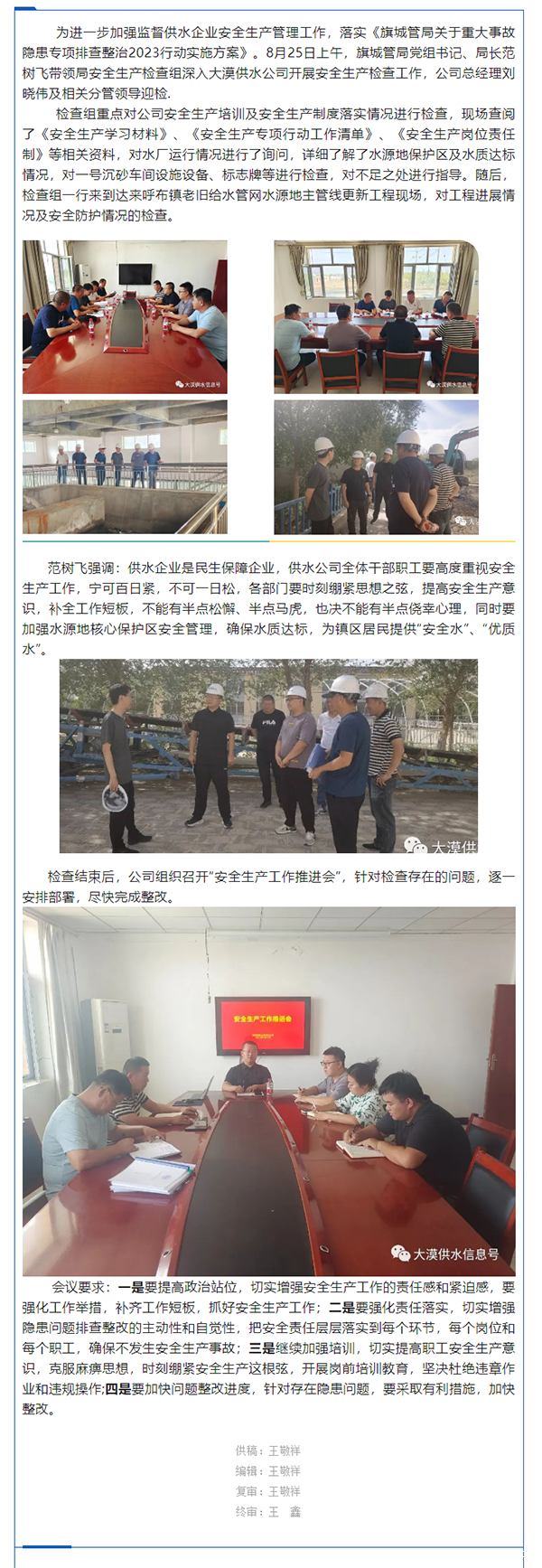 旗城管局党组书记、局长范树飞一行深入大漠供水公司开展安全生产检查工作