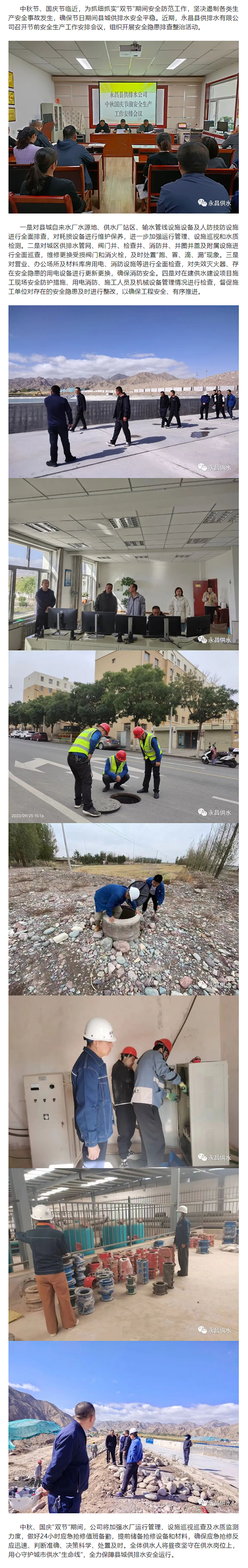 扎实开展安全隐患排查 全力保障“双节”供水安全