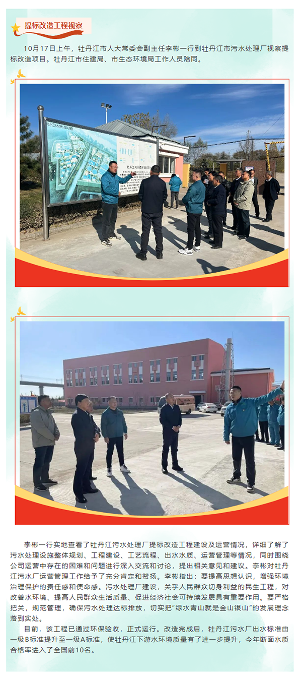 牡丹江市人大常委会副主任李彬一行到牡丹江污水处理厂视察提标改造项目工程