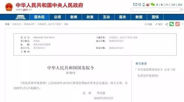 日前,国务院总理李克强签署国务院令,公布《优化营商环境条例》(以下简称《条例》),自2020年1月1日起施行。