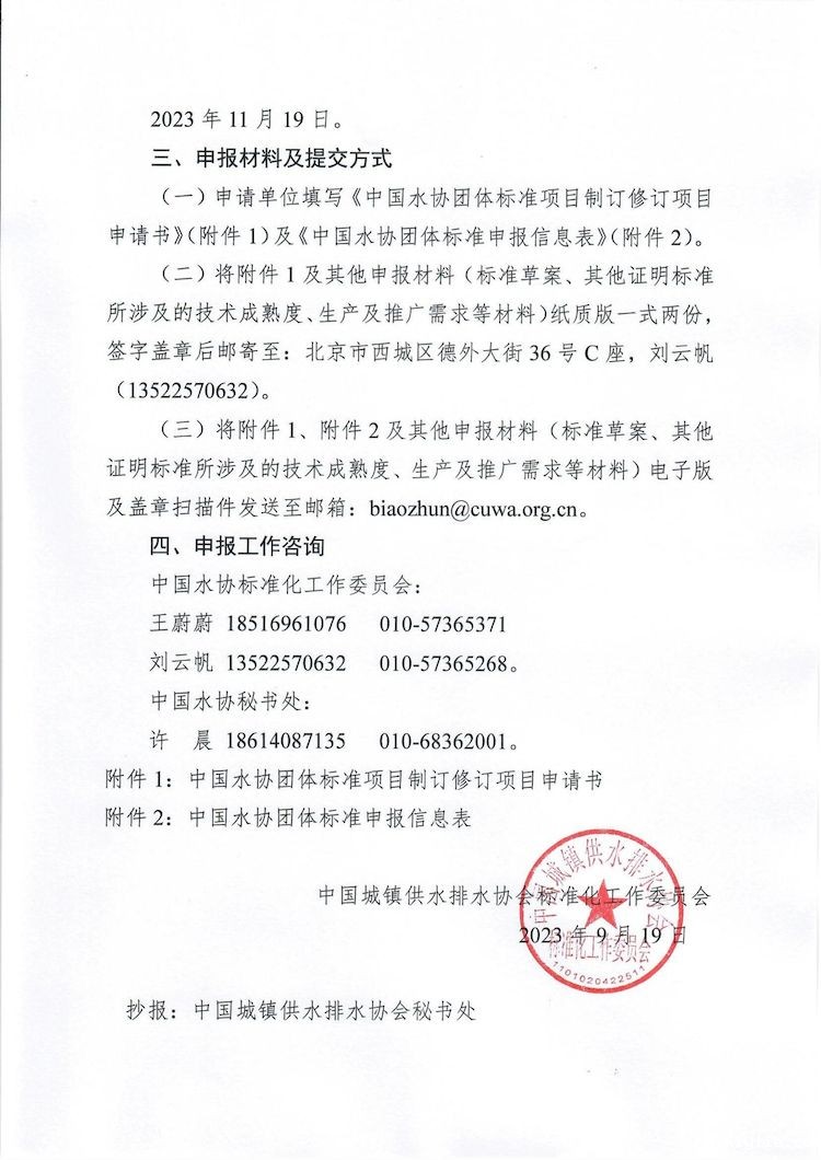 关于征集中国城镇供水排水协会2024年团体标准项目的通知