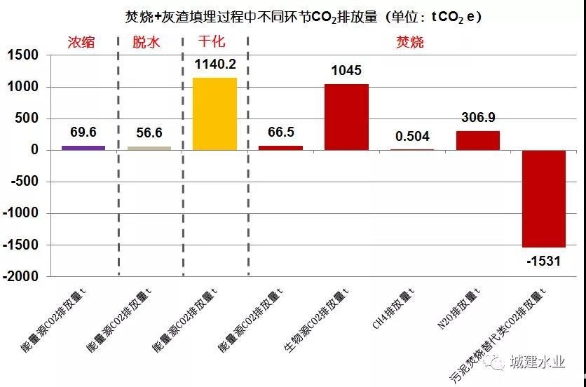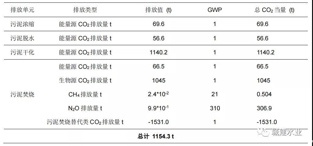 如表1所示,污泥干化焚烧工艺的CO2排放当量为1154.3 tCO2/Gg干污泥。