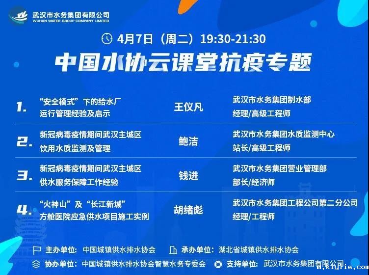 优米视讯苹果下载app云课堂开讲啦!记录疫情最前线保供亲历者的经验!武汉水务集团将于4月7日(周二)19:30-21:30,与大家共同探讨供水安全保障及应急供水经验,期待大家参与!